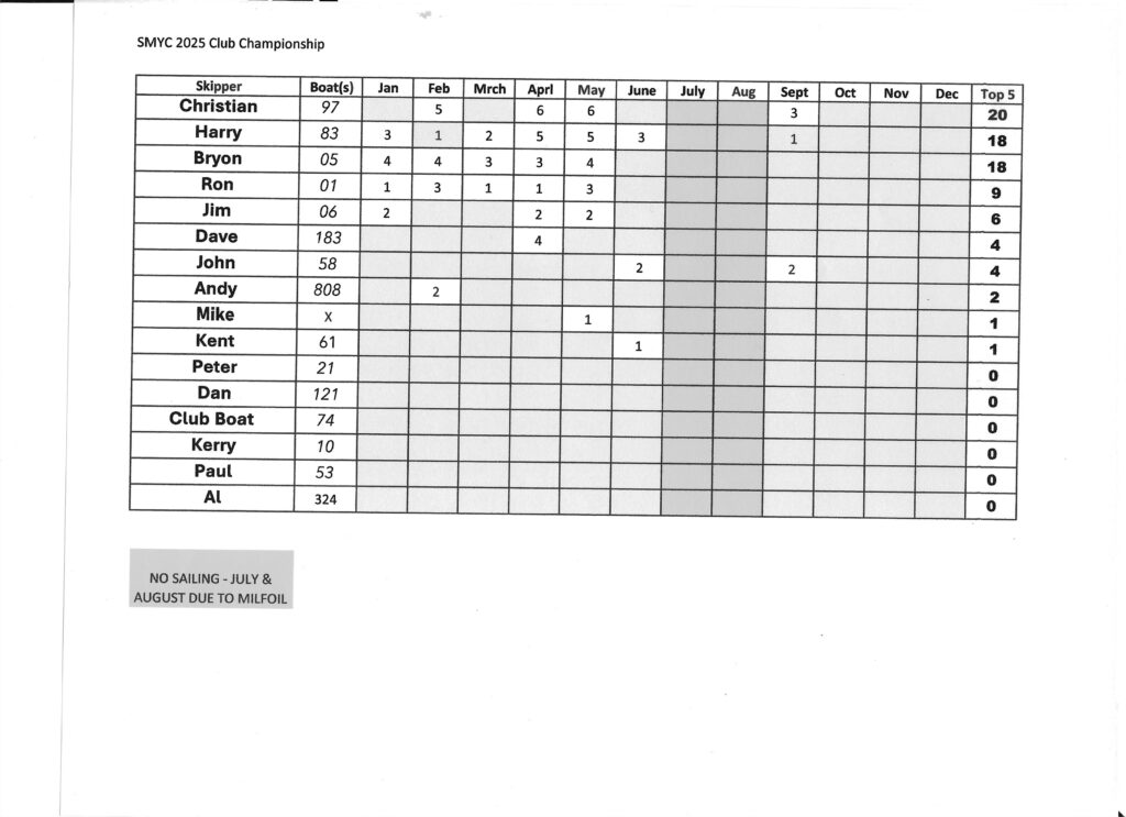 DUE TO MILFOIL JULY & AUGUST REGATTAS ARE CANCELLED