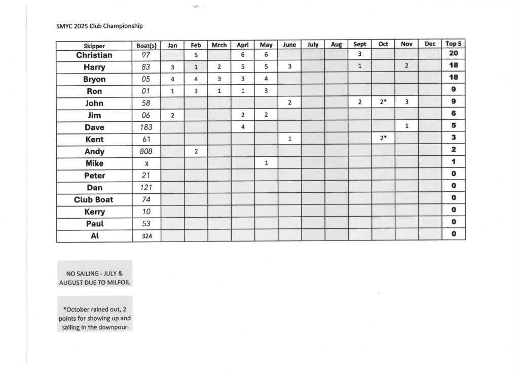 The top 6 regatta results from each sailor will be used to determine of 2024 CC.