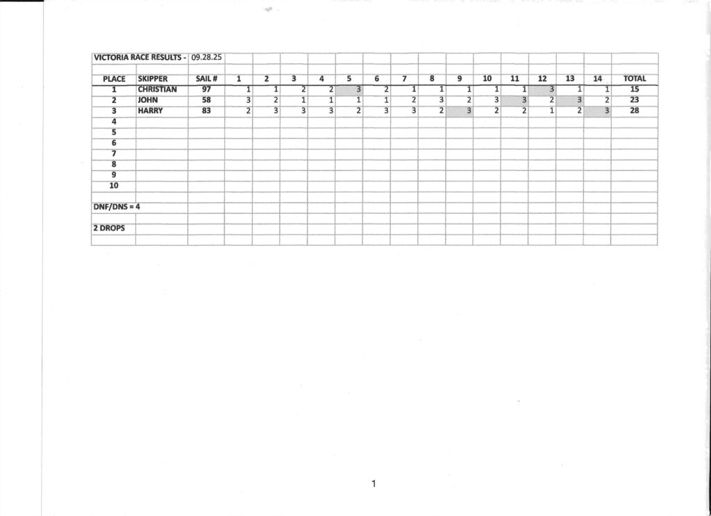 SKIPPER | BOAT # | 1 | 2 | 3 | 4 | 5 | 6 | 7 | 8 | 9 | 10 | 11 | 12 | 13 | 14 | TOTAL |